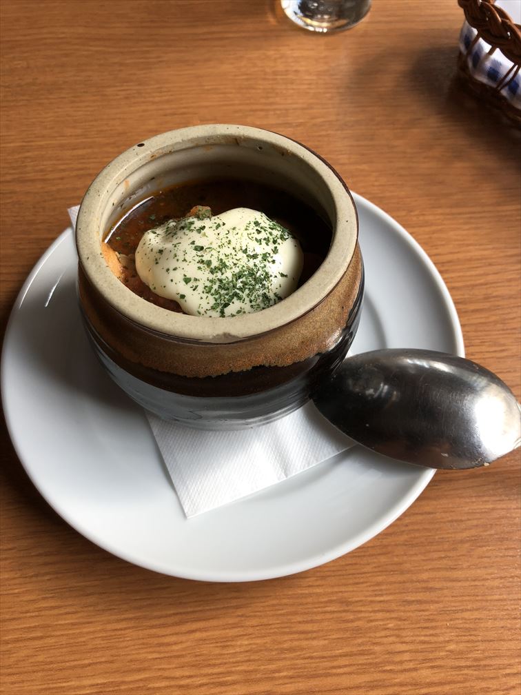 ビーフ・ストロガノフにも惹かれるが、左上の法則に従って珍しい「鶏肉と野菜の壺焼き」を注文。