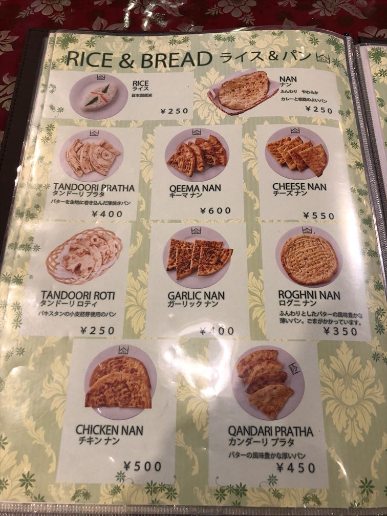 食べログ情報によると、タンドーリロティ250円がオススメらしい。単純に安いから?
