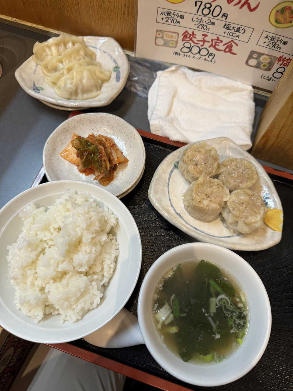 シュウマイ定食830円+水餃子270円で、税抜1100円or税込1210円かな?と思ったら、1190円だった。謎計算だな~。