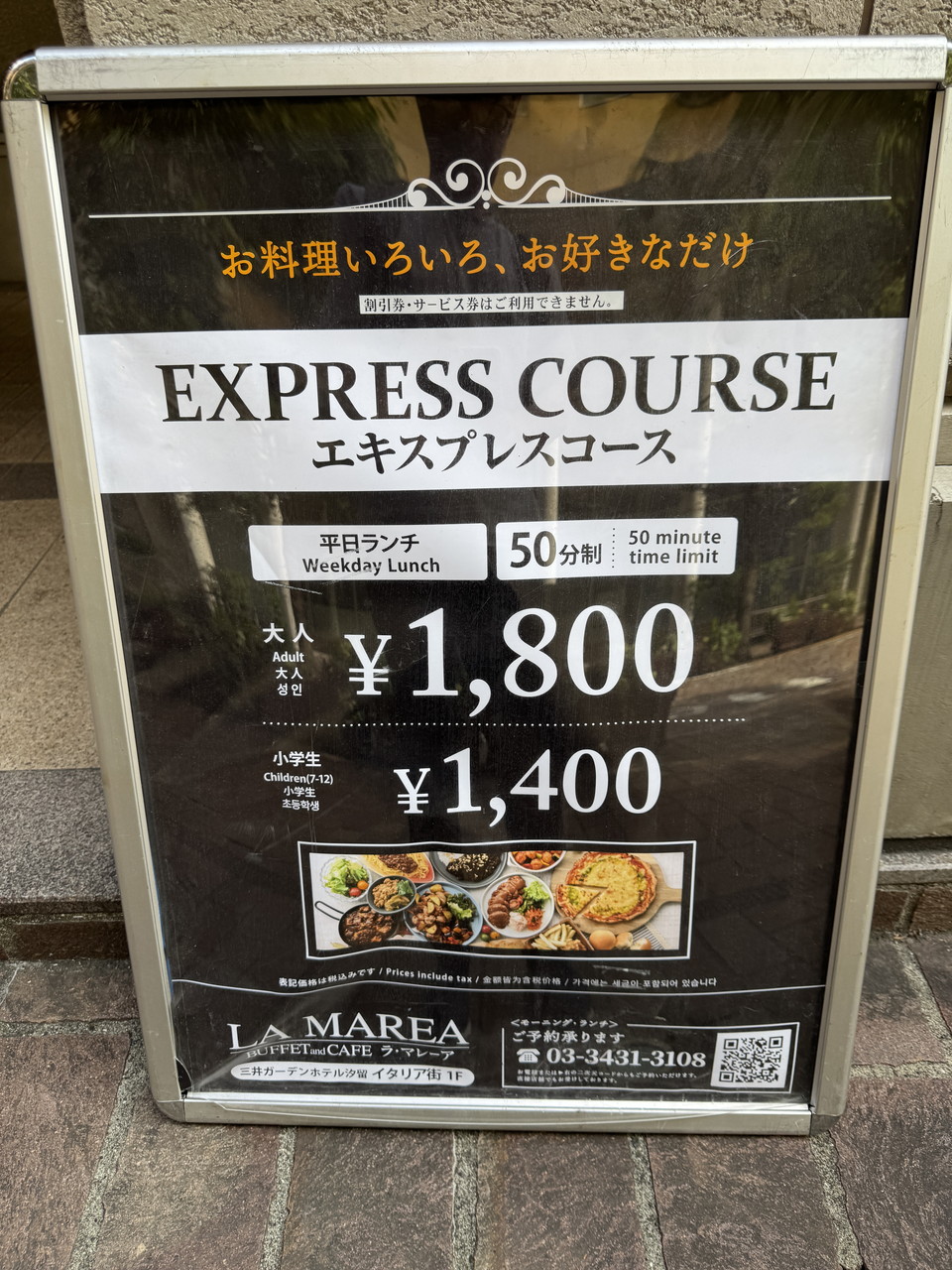 アルコール飲み放題、ローストビーフ、点心など、他のオプションもあるけど、リーマンのランチには、一番安いエクスプレスコースで!