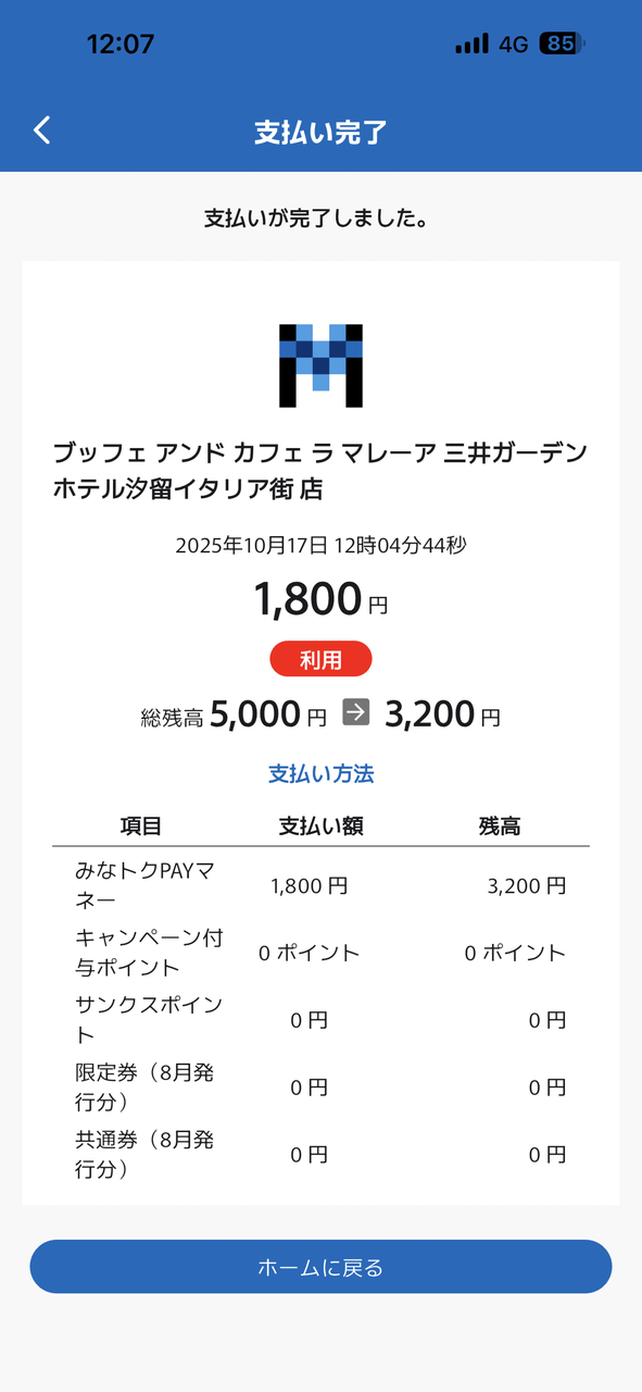みなトクPAYで20%還元!1800円(360円還元)ランチビュッフェ@ラ・マレーア@新橋 → かえるの本屋@麻布十番で「介護未満の父に起きたこと」990円+「漫画 お金の大冒険 黄金のライオンと5つの力」1958円で589円還元。合計で949円のポイント還元!