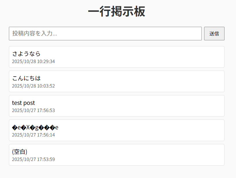 単純に、POSTで1行テキストをDynamoDBに格納して、GETで投稿済みテキストを全部取得