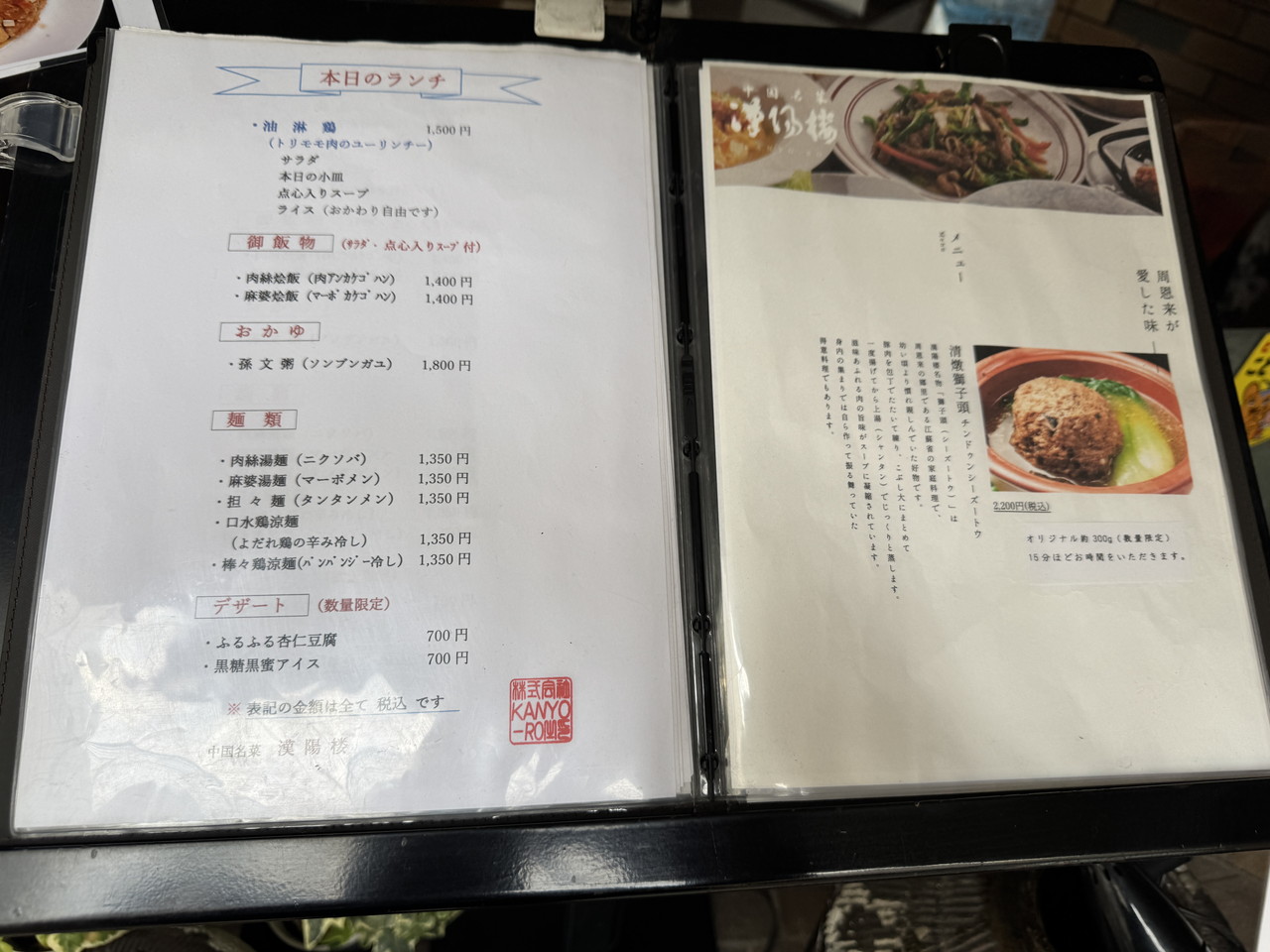全体的にお高め。孫文粥1430円→1800円と値上げしてた!