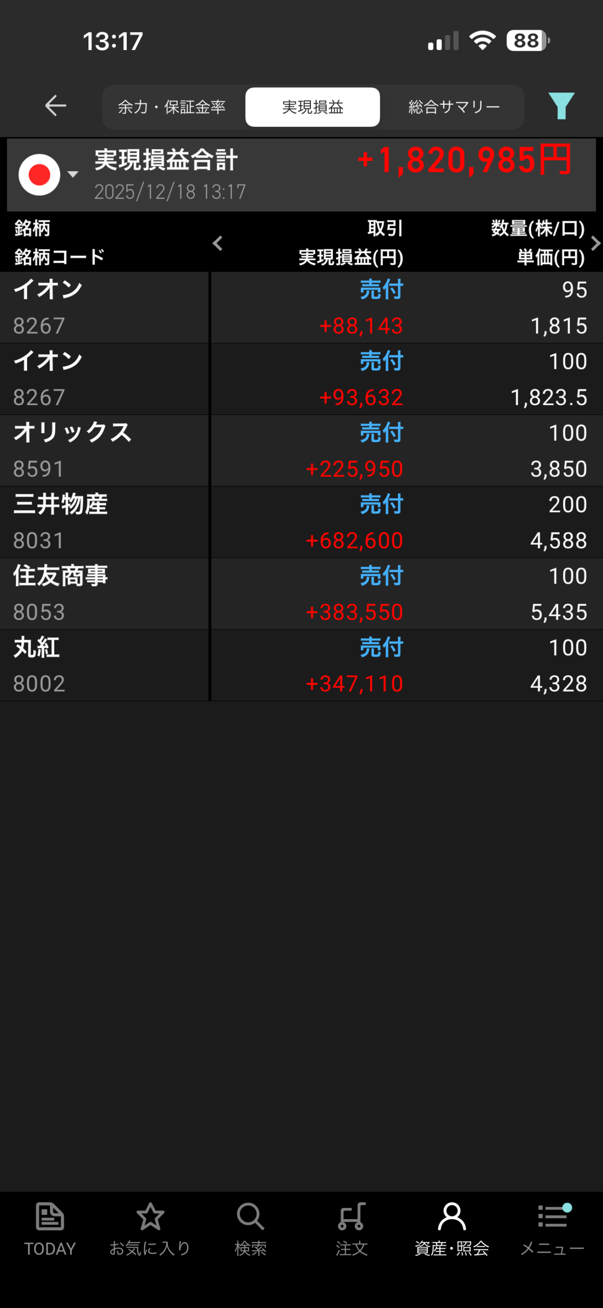 銘柄名:イオン(旧NISA・2回売却)