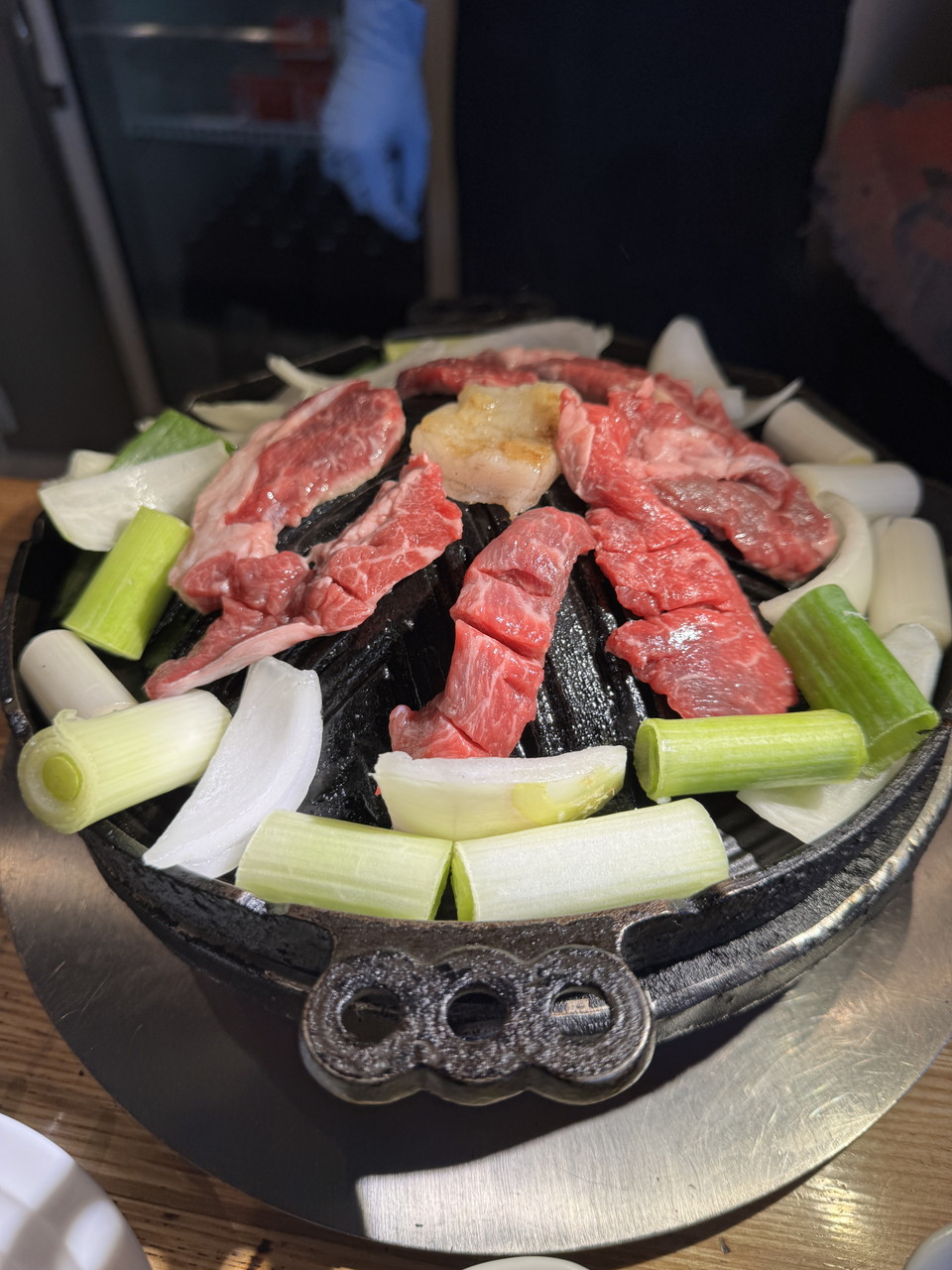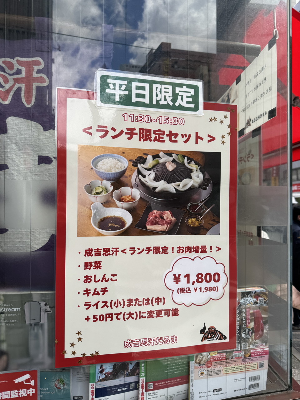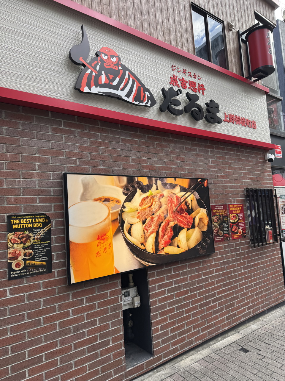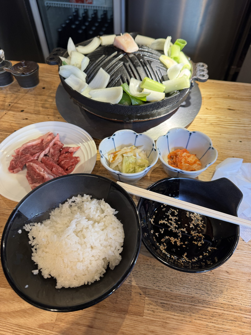 ランチセット(ジンギスカン、ご飯、キムチ、お新香付きで1980円)@成吉思汗だるま 上野御徒町店 2025年12月23日 に admin が投稿 平日限定ランチセット(ジンギスカン、ご飯、キムチ、お新香付きで1980円)@成吉思汗だるま 上野御徒町店 成吉思汗だるま 上野御徒町店 北海道で有名なジンギスカンの店で、開店当初は行列店だったけど、空いてきたので行ってみた。 全員、平日限定ランチセット(ジンギスカン、ご飯、キムチ、お新香付きで1980円)を頼んでた。 注文してから、炭を入れて鉄鍋を加熱して・・・。となかなか食べられない! 味自体は悪くないけど、ランチに食べるには時間がかかりすぎるね。あと羊肉は高いのでしょうがないけど、量が少ない! No related posts.