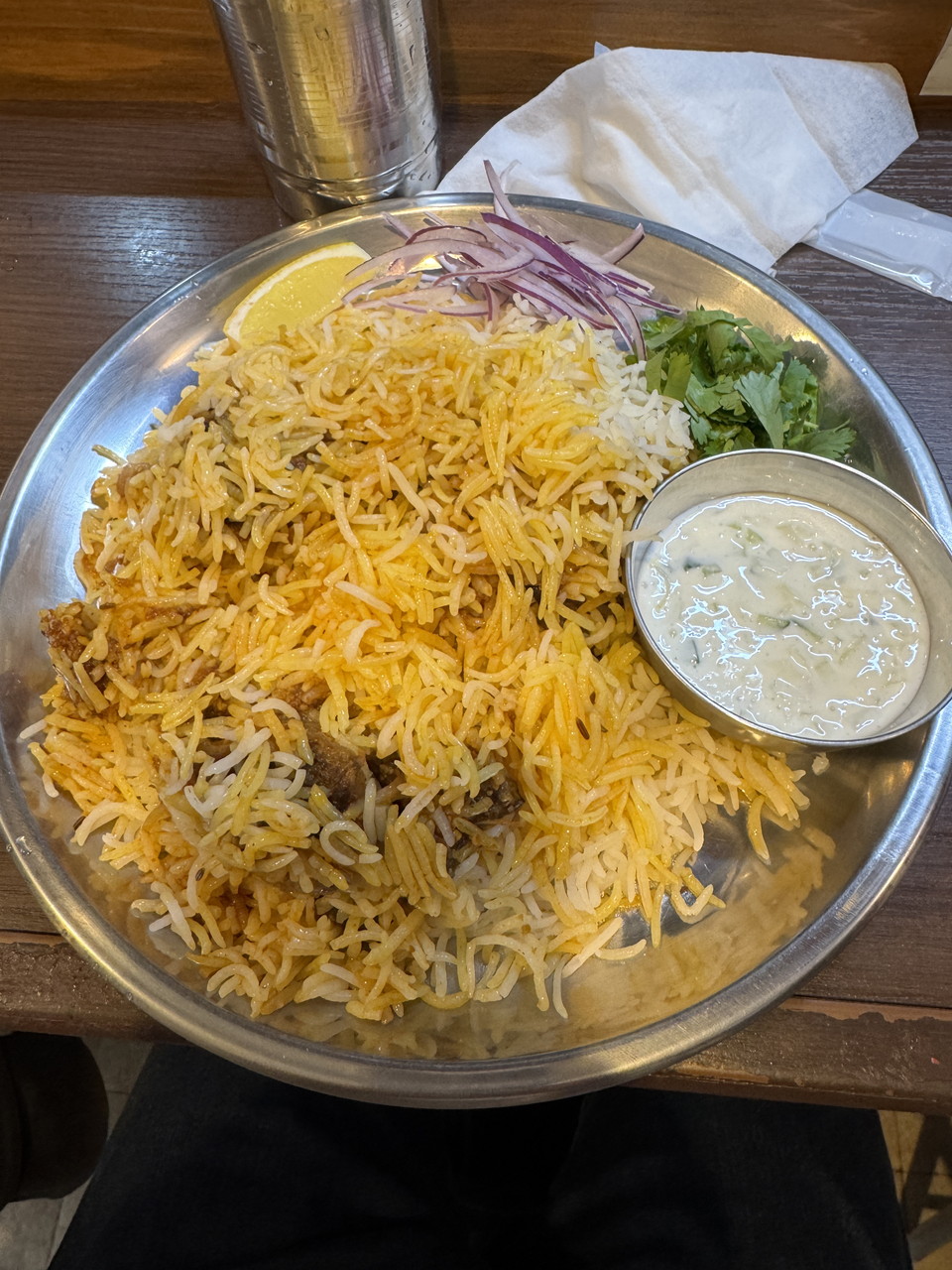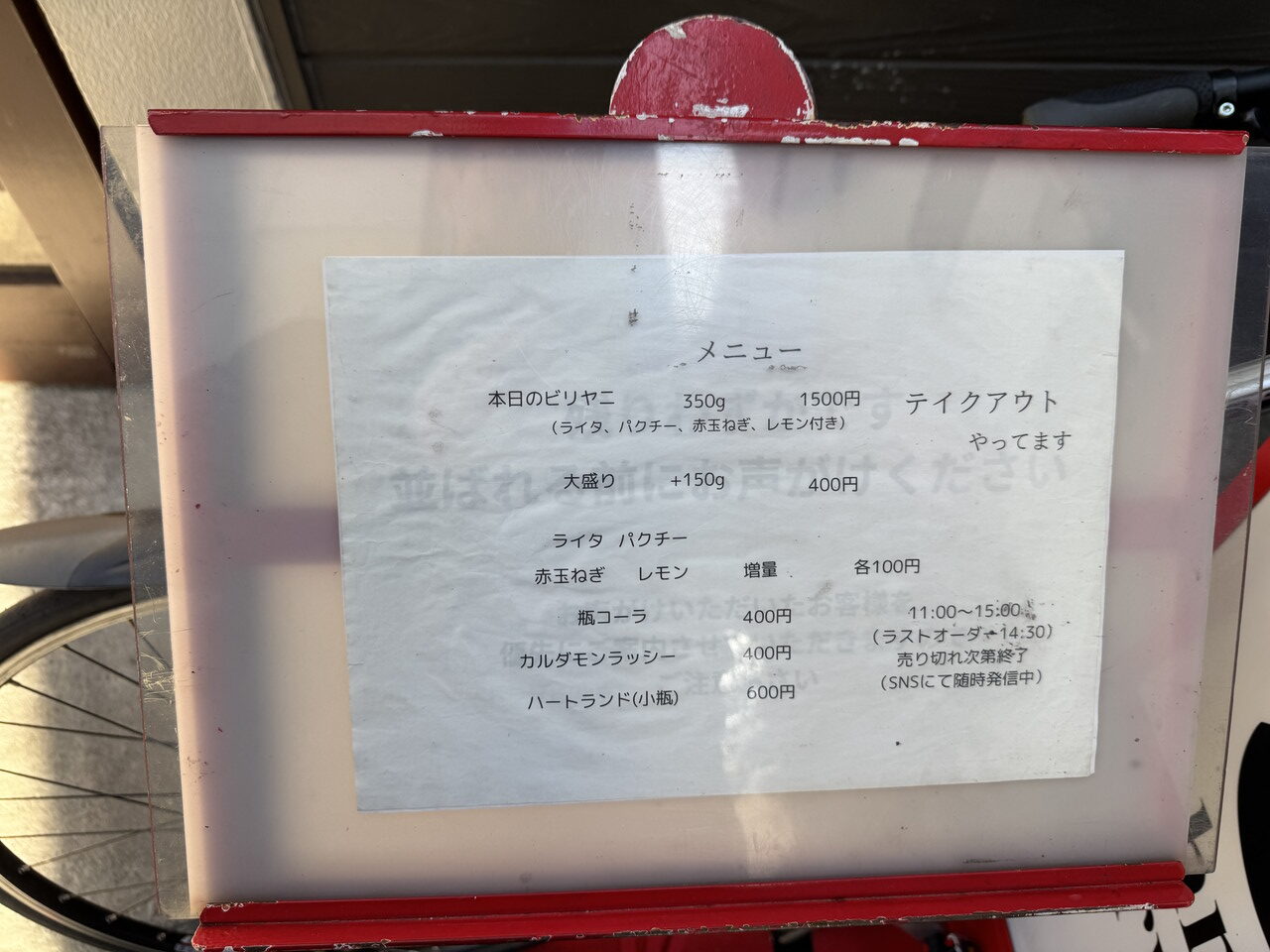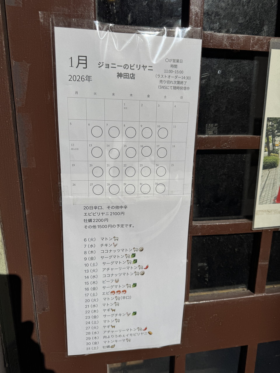 日替わりビリヤニ専門店(ランチのみ)、1500円+大盛り400円@ジョニーのビリヤニ 神田店。カウンター5席&盛るだけの提供スピードなので、立ち食いそば感ある。
