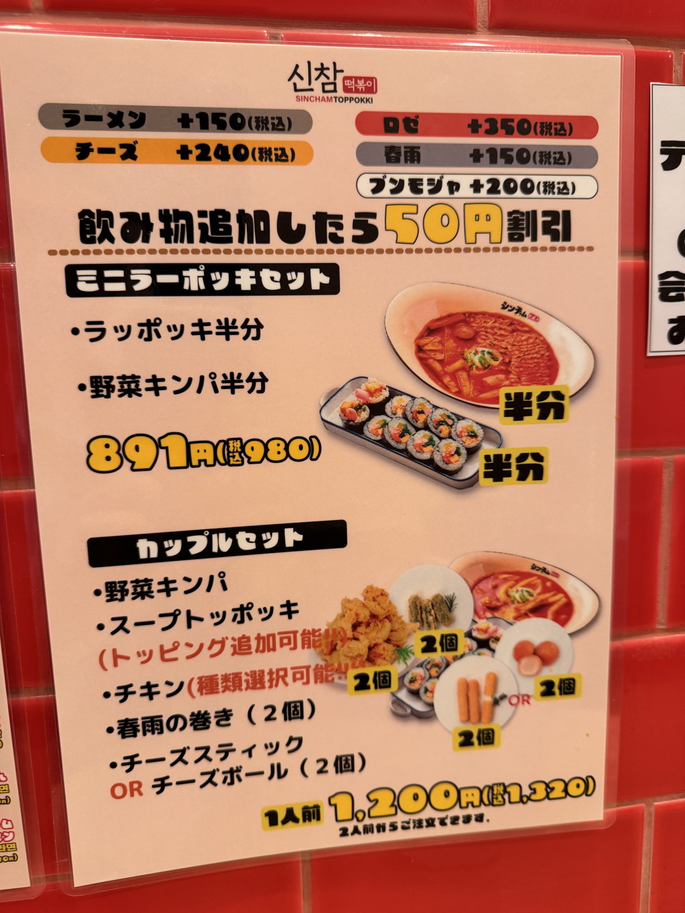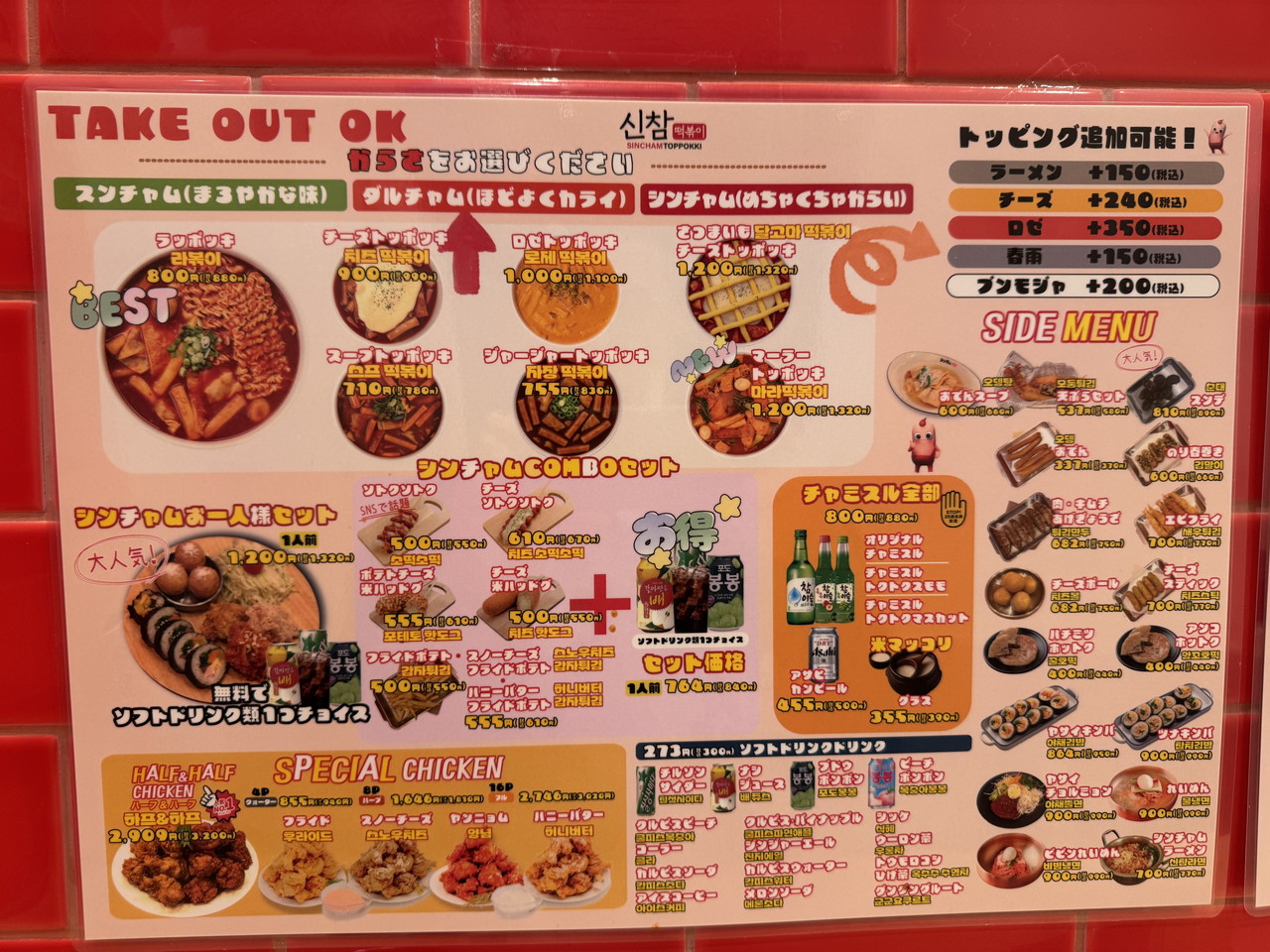 トッポギ専門店って書いてあったけど、韓国グルメはだいたいある。