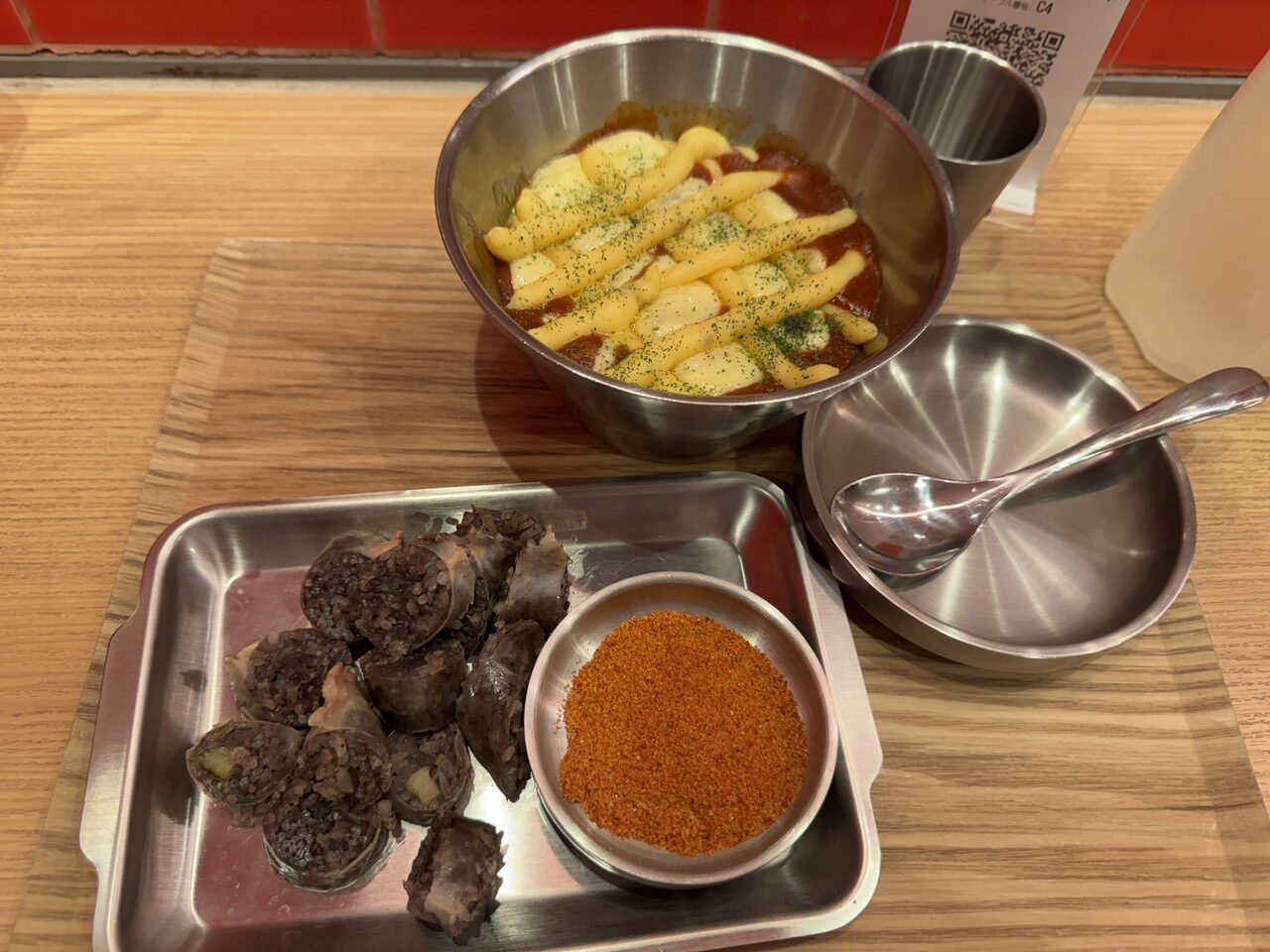 さつまいもチーズトッポギ1320円+スンデ890円@シンチャムトッポッキ@渋谷。アルコールの無い女子向け居酒屋って感じだった。