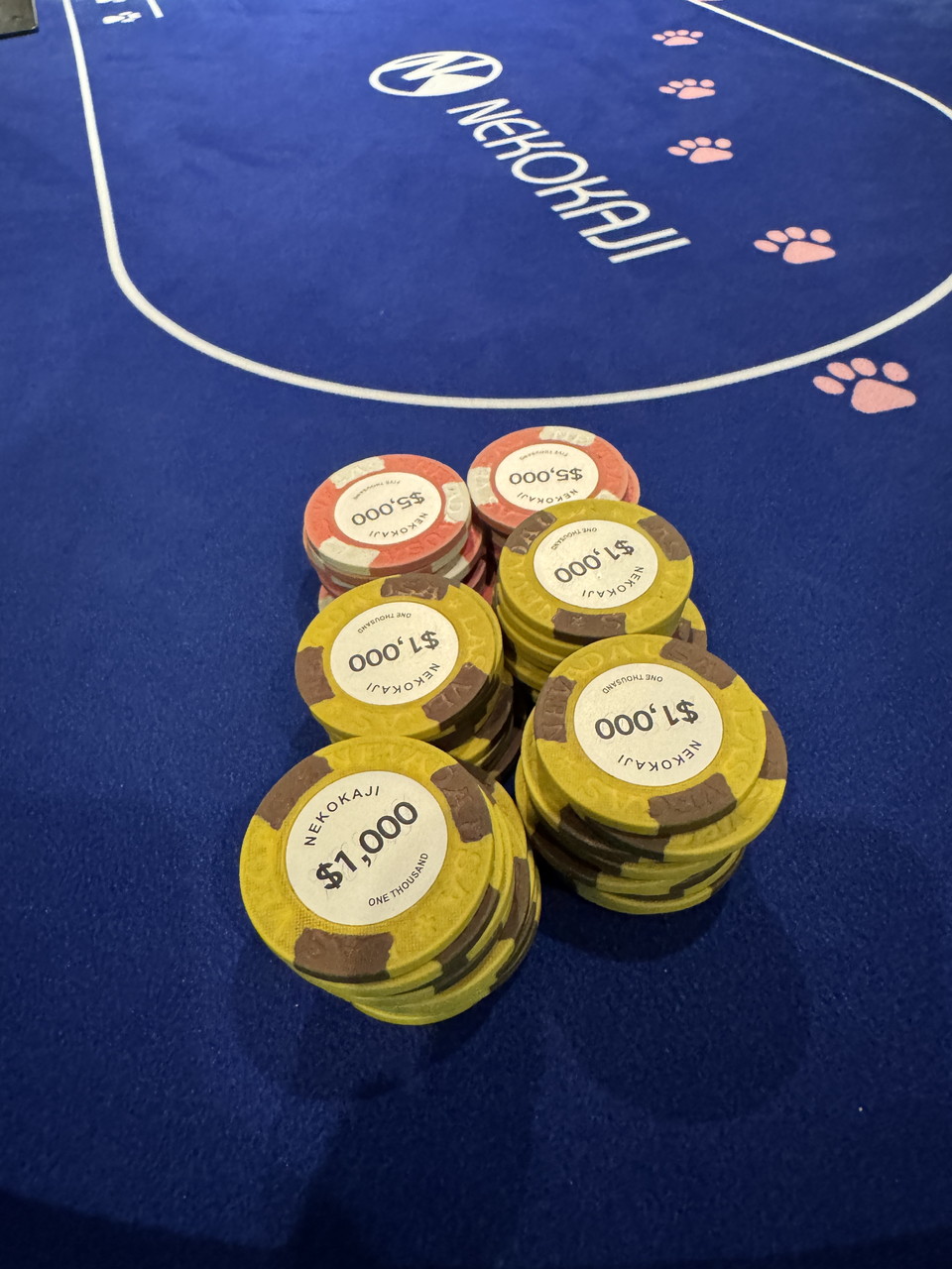 歌舞伎町のネコカジで、ポーカーのトーナメントに初参加。参加人数43人で6位になったから、それなりに強くなっている?
