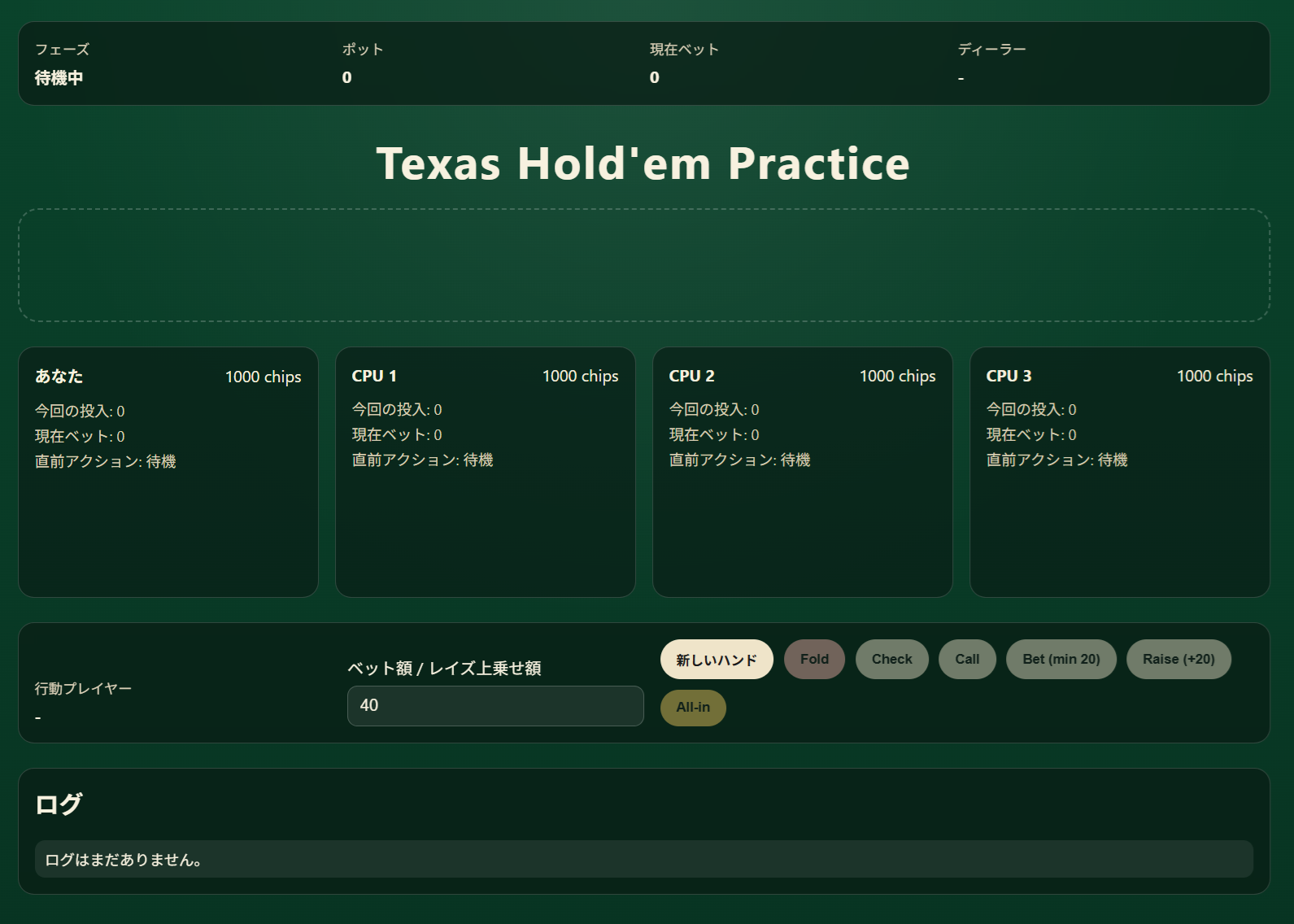 chatgpt(Open AI)のCodex(コード自動生成)を使って、テキサスホールデム(CPU3人対戦)を作ってみた。指示するだけで、ここまで作ってくれるのは驚き!