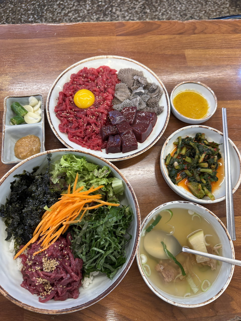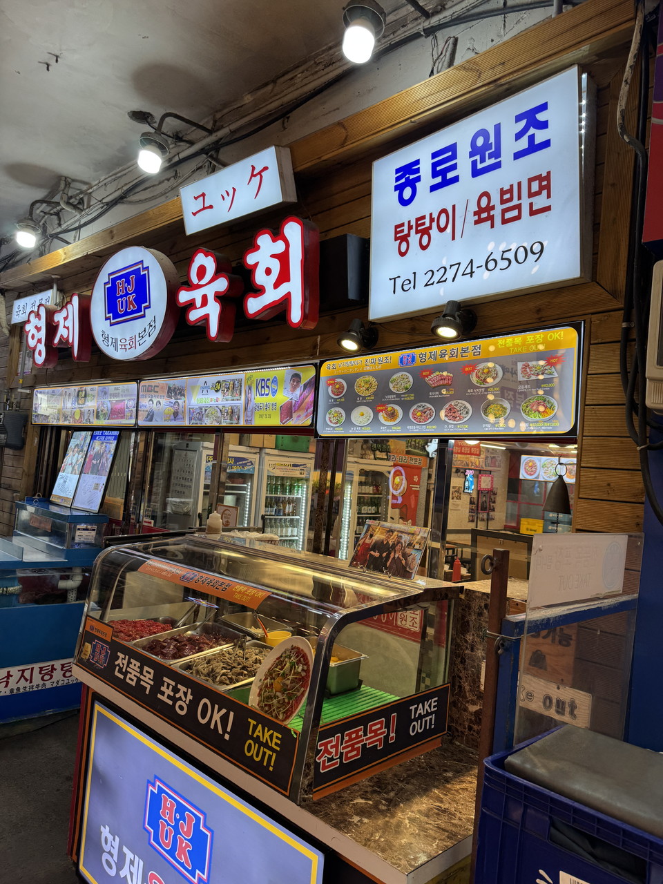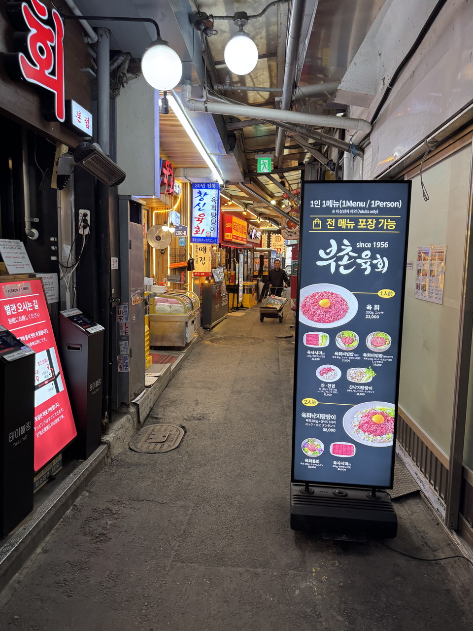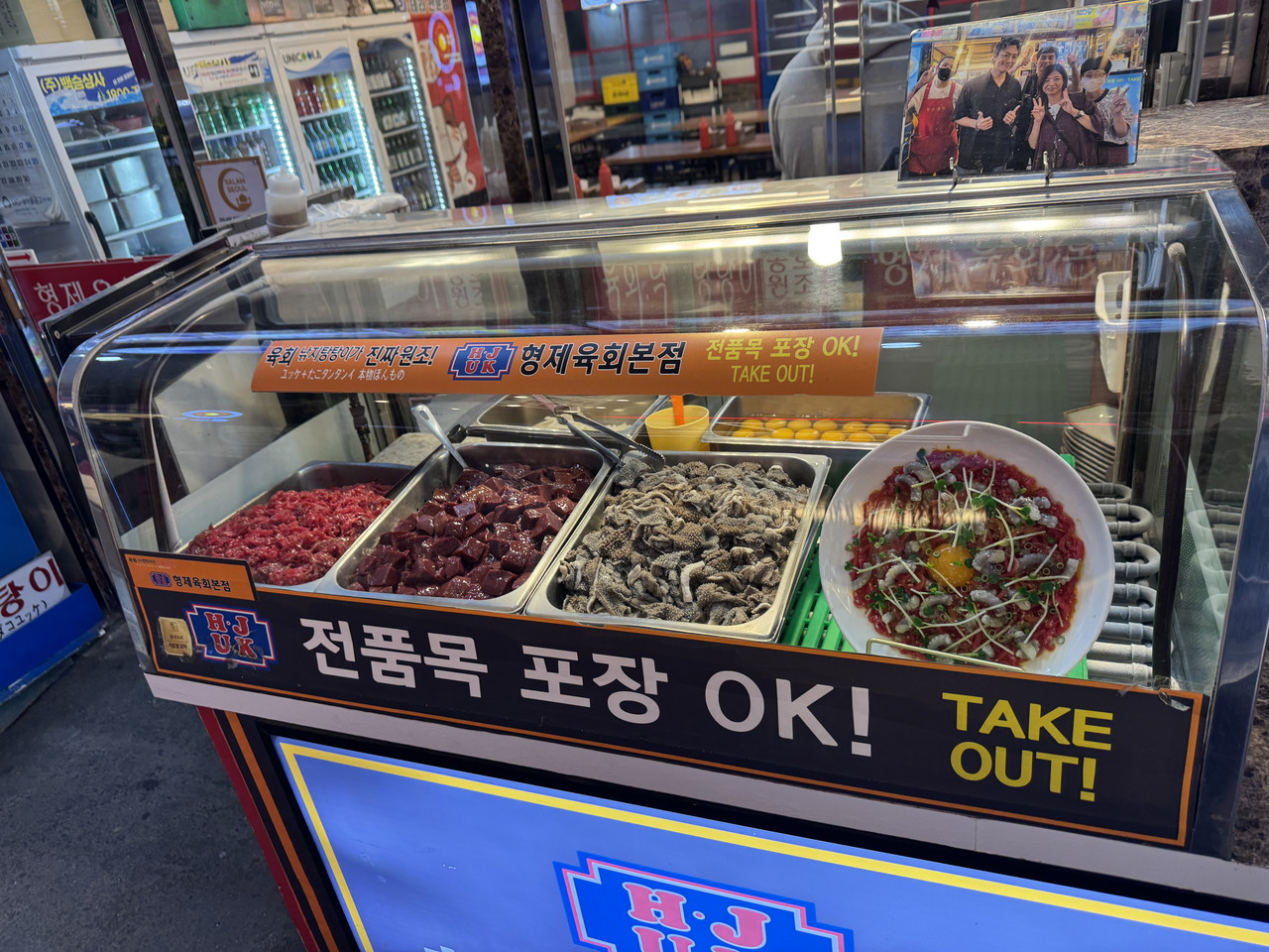 韓国の広蔵市場(クァンジャン・シジャン、アメ横+築地みたいな所)で食べ歩き。生レバ刺し+犬肉スープ!