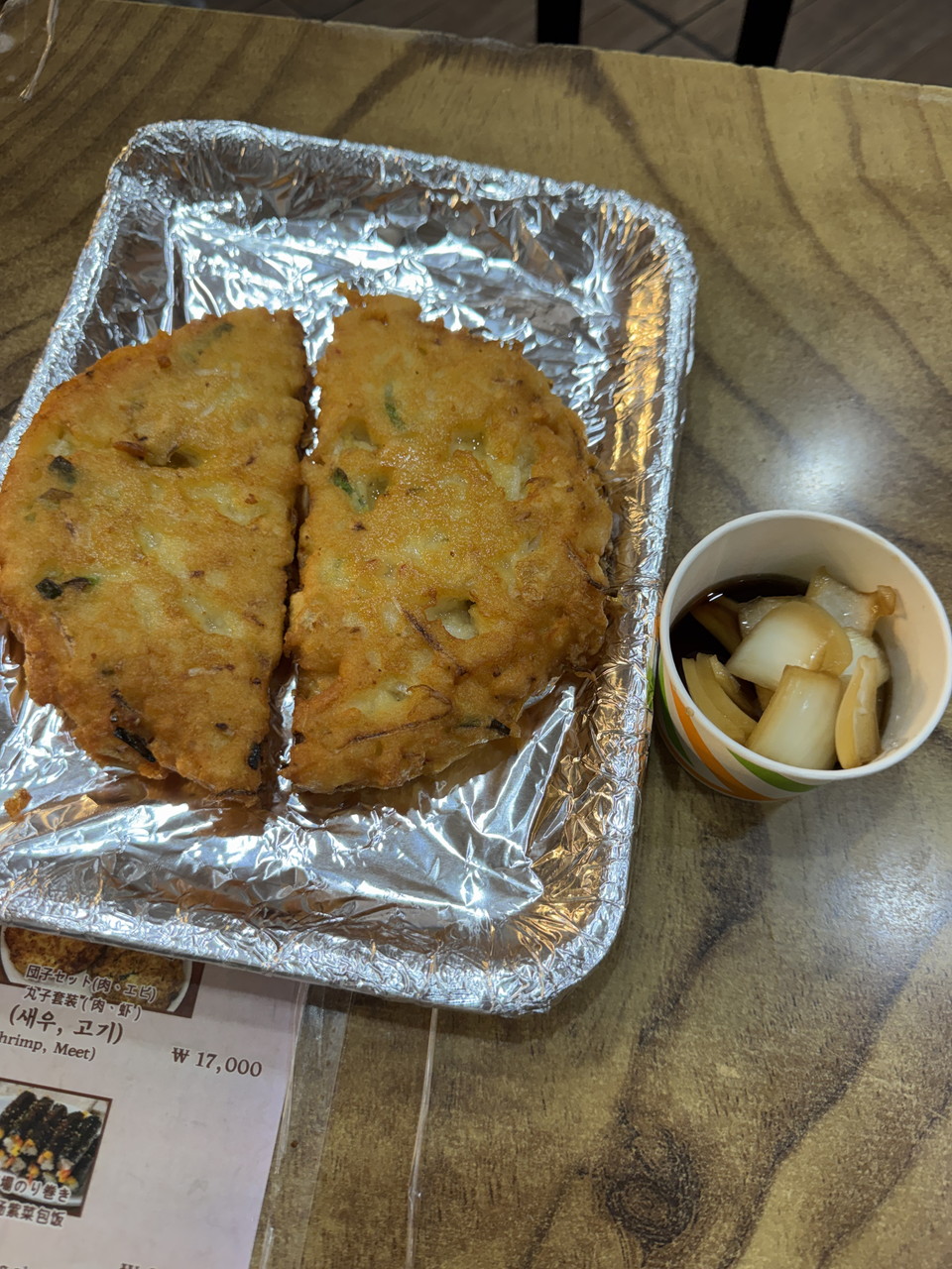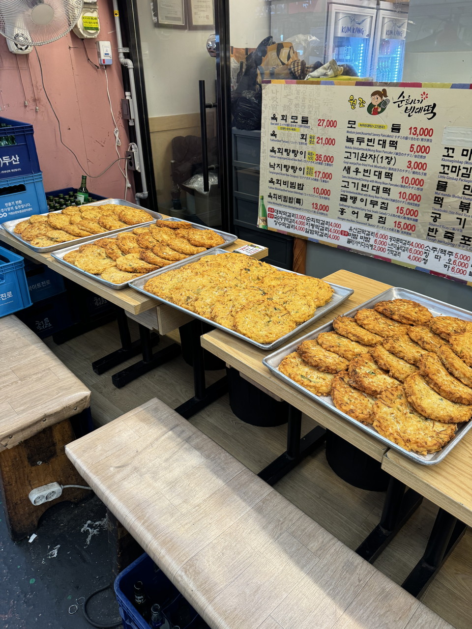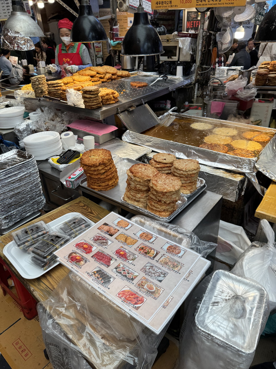 広蔵市場名物のピンデトック(緑豆チヂミ)
