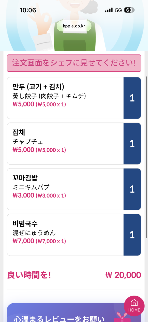 「アニョハセヨ、ポシンタン、ハナ、ジュセヨ!」と呪文のように唱えると出てきた。
