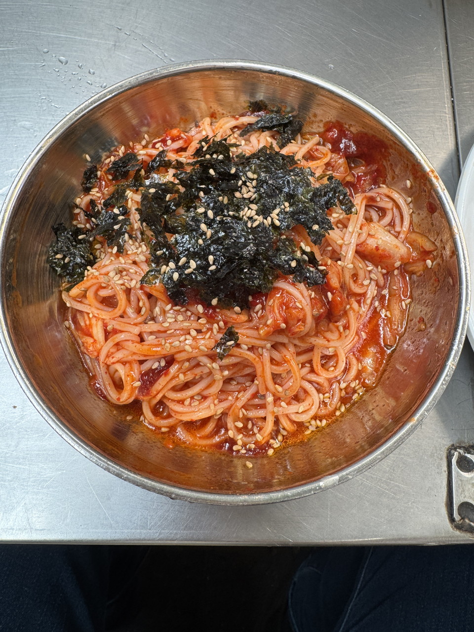 カルグクス(韓国うどん)の屋台。ここが一番人気だった。