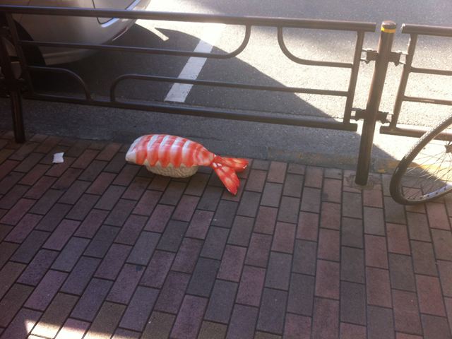 道には、なぜか寿司のどデカいサンプルがおいてあるw