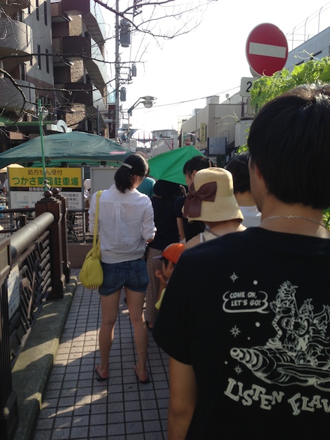 なので前売り券は買わずに当日券を購入。16時開催だけど15:40の時点でかなり並んでいる…。直射日光が当たって暑い!