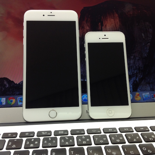iPhone6 Plusは、手の大きな男性なら、なんとか片手でもイケる(とは言え,iPhone5とは親子ほど違う)