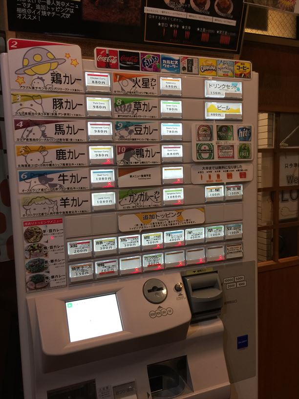 ここも食券式。残念ながら珍しい肉(ジビエ系)は、全て品切れだった…。